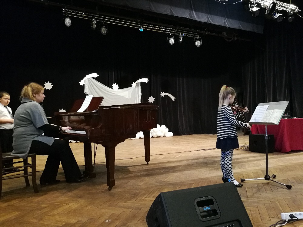 Adventní jarmark v KK Žebrák, sobota 9. prosince 2017. Vystoupili žáci pí uč. Elišky Chaloupkové, Marie Fajfrlíkové a Barbory Janečkové. Na závěr našeho programu zazpíval pěvecký sbor ZVONEK Barbory Janečkové.
